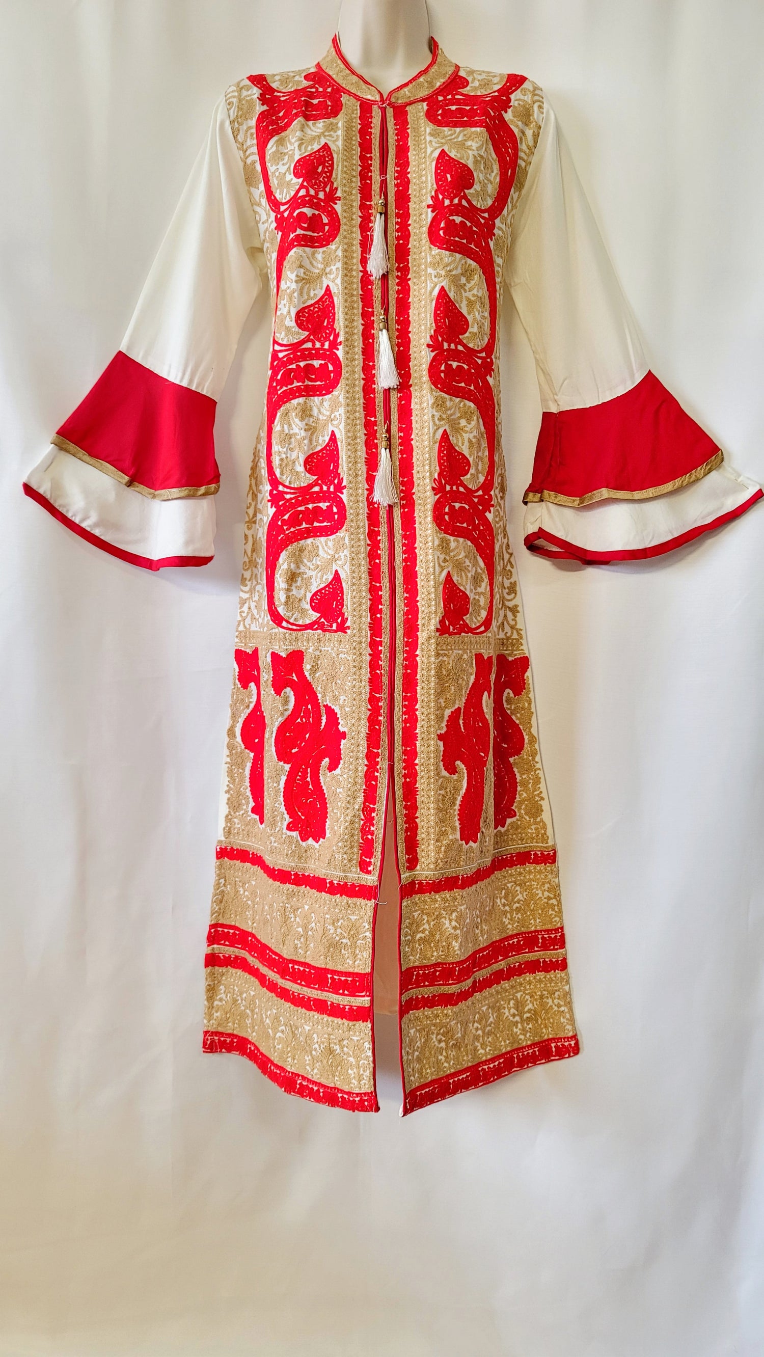 - Beautiful 2 layer bell sleeves and tassels on the bodice.