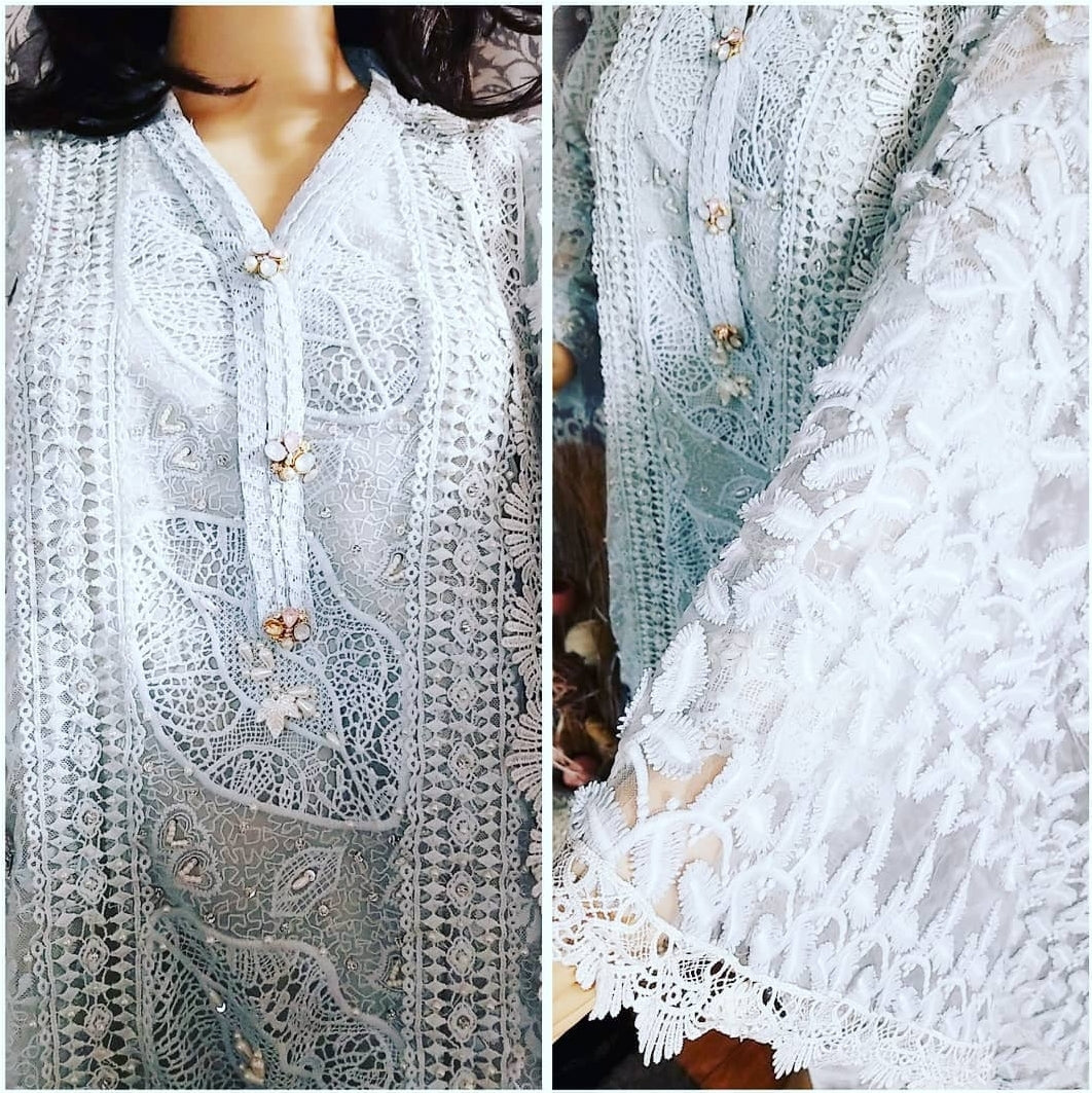 - Dupatta: Net material with Feathers in Crochet and self lace borders
