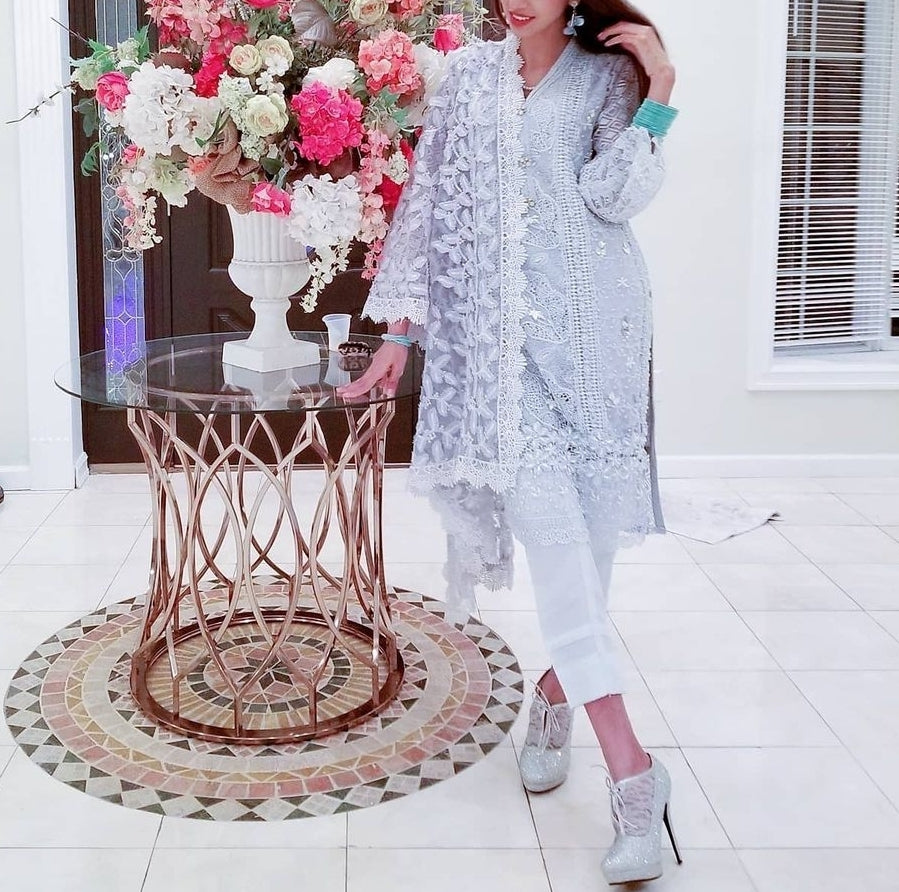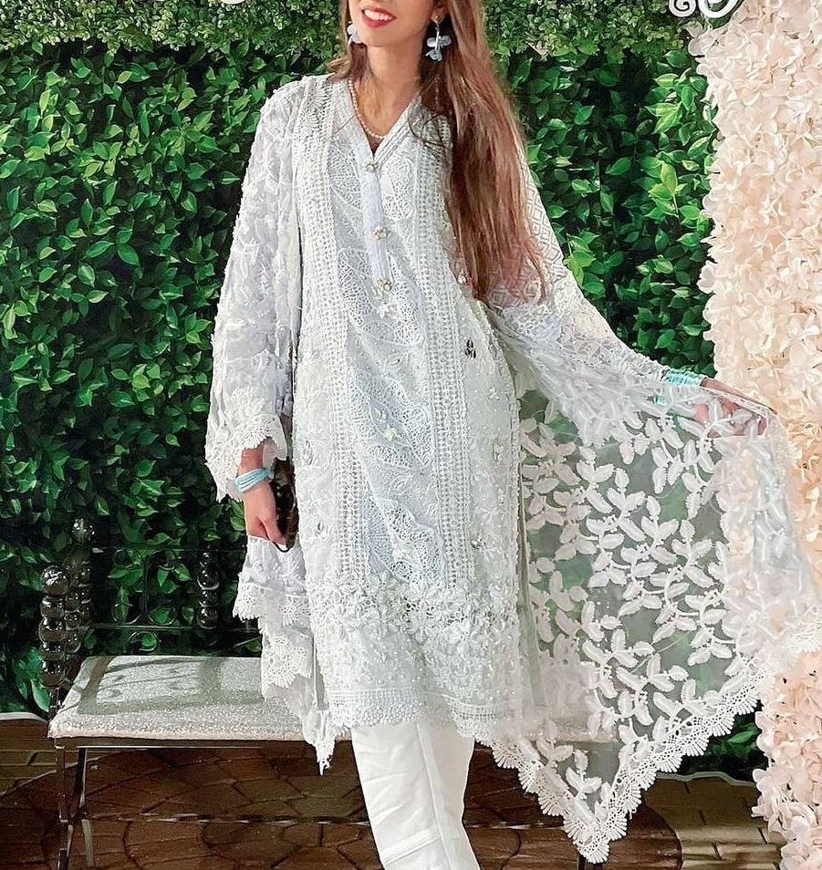 - Kameez (top): Embroidered and Heavily Embellished with pearls, with beautifully done crochet work